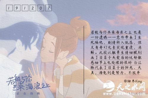 一部能给人留下记忆的影片,一定是能带给人力量的。“温柔励志”是很多观众赋予《若能与你共乘海浪之上》的标签,“白江豚代表了日菜子的阳光、天真,海龟则是努力、不放弃”是观众们对于影片的解读。在爱中汲取力量、相互扶持、相伴成长,这才是爱情最美好的的模样。