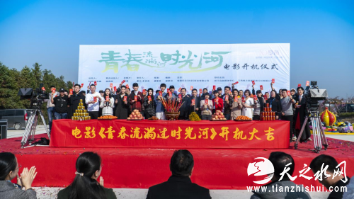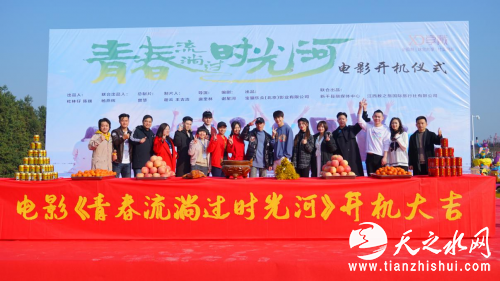 2019年12月12日,由宝骊乐众(北京)影业出品,新干县融媒体中心、江西教之旅国际旅行社有限公司联合出品、享戴珠宝共享社交电商平台独家赞助的青春励志型校园电影《青春流淌过时光河》在江西新干县井盛农业生态园彩虹谷举行了隆重的开机仪式。作为新干县首部励志电影,开机仪式上嘉宾云集,邀请到中共新干县政府副县长周晓霞、新干县委宣传部副部长、县融媒体中心主任、县广播电视台台长聂小荣,及参与协助电影拍摄、提供场景、车辆、道具、服装等支持单位,公安局、消防大队、城管局、交警大队、人民医院、教育局、新干县一中、新干县二中等各单位领导出席开机仪式,副县长周晓霞以及县广播电视台台长聂小荣等领导上台发表了重要致辞。