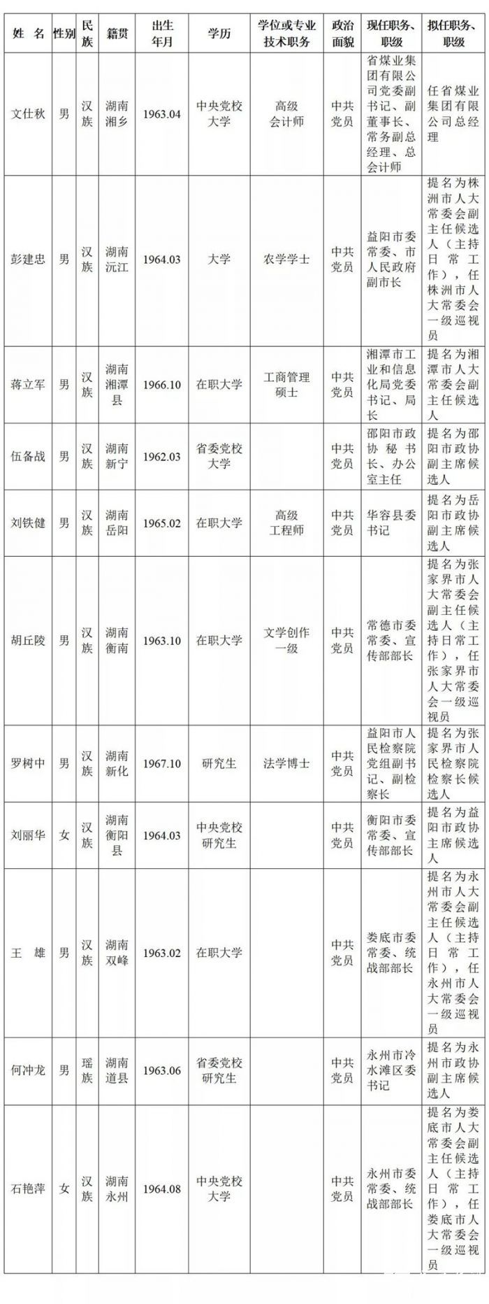 为了加强对干部选拔工作的监督,提高识别和任用干部的准确程度,现对湖南省委常委会会议研究决定的下列拟任职人选(提名人选、候选人人选)进行任前公示: