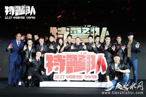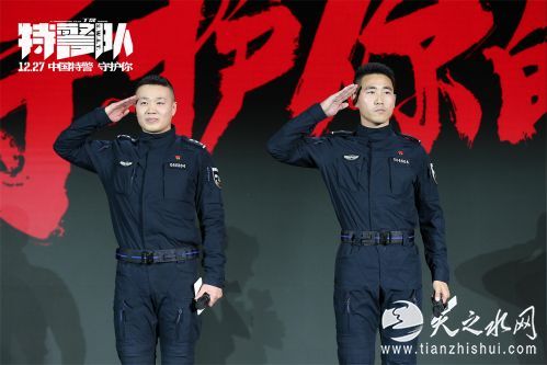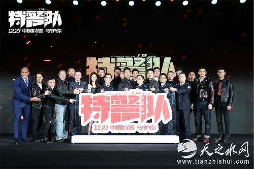 12月26日,由丁晟执导的动作警匪电影《特警队》在京举办了以“中国特警守护你”为主题的首映发布会。导演丁晟,携领衔主演凌潇肃、贾乃亮、金晨、张云龙,主演刘俊孝、刘文擘、蔡心、王泊文、乔振宇,特别出演淳于珊珊、罗伯特·克耐普、桑平、马浴柯、张亮一同亮相,酷帅干练的着装,彰显英姿勃发,更有真实特警惊喜现身,引爆全场。