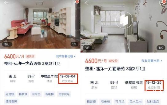 记者查询某找房网站后发现,最近一段时间,北京市住宅租金呈现出明显的下行趋势。以朝阳区某小区为例,同样朝向,面积均为89平米的整租房源,在今年8月4日的成交价为6400元/月,而12月25日的成交价为4600元/月,直降1800元/月。
