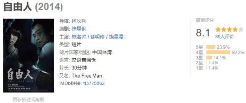 2014年,柯汶利拍摄的短片《自由人》,豆瓣评分8.1,获得金马奖最佳创作短片提名,金钟奖最佳导演和最佳电视电影奖,甚至入围了当年的奥斯卡最佳实景短片,其导演实力不言而喻。