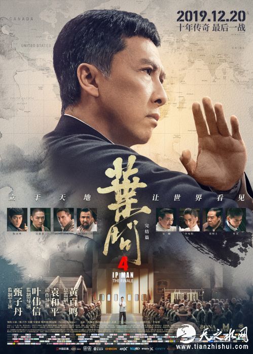 电影《叶问4:完结篇》由博纳影业集团、东方影业出品,北京博纳影业集团有限公司、上海天马联合影视文化有限公司、天津猫眼微影文化传媒有限公司、万达影视传媒有限公司、太阳娱乐文化有限公司、耳东文化(北京)有限公司、复星影业、上海鸣肇影视文化有限公司、佛山东天影视文化有限公司、天马影联影视文化(北京)有限公司、博纳影视娱乐有限公司联合出品。甄子丹、吴樾、吴建豪、斯科特·阿金斯(Scott Adkins)领衔主演,郑则士、陈国坤、敖嘉年、高战(Chris Collins)、叶禾主演,李宛妲特别出演,影片正在全国热映。
