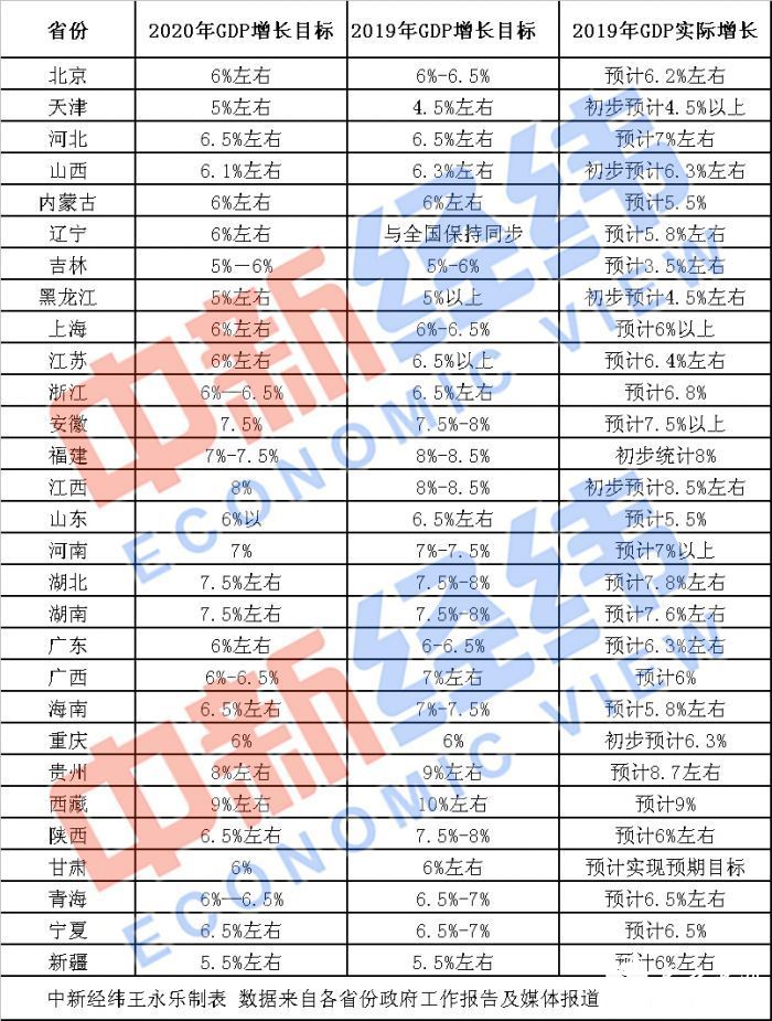 中新经纬客户端1月19日电(王永乐)从2020年1月开始,全国各省份进入了地方“两会时间”。按照31省份两会时间安排,除四川、云南省级地方两会在2月份召开外,截至1月18日,其它29省份已经召开省级地方两会,在晒出2019年经济成绩单的同时也公布了2020年的经济增长目标。
