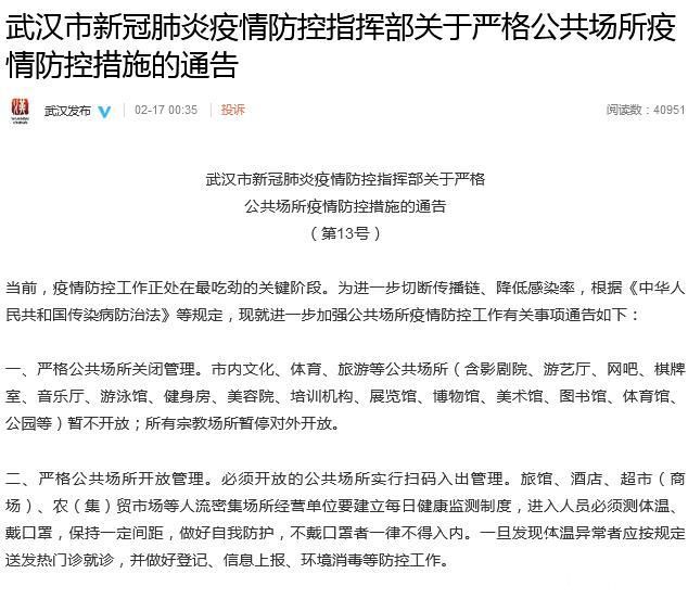 《通告》称,当前,疫情防控工作正处在最吃劲的关键阶段。为进一步切断传播链、降低感染率,根据《中华人民共和国传染病防治法》等规定,现就进一步加强公共场所疫情防控工作有关事项通告如下: