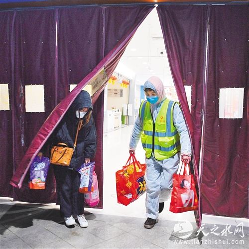 2月8日,回到家中的华润武钢总医院护士小张对志愿者余靖的热心帮助表示感谢。