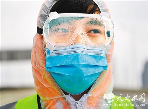 2月8日,忙碌在武汉抗“疫”一线的志愿者余靖的防护眼镜由于长时间佩戴,起了厚厚一层水雾。