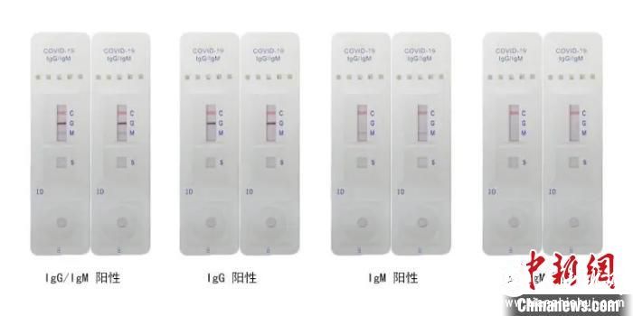 IgM/IgG抗体胶体金检测试纸(2分钟左右检出)。 杭州医学院提供 摄