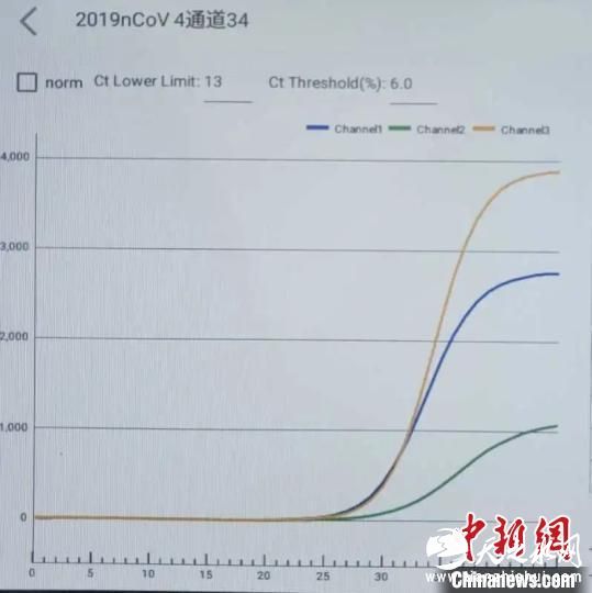 免提取一步法核酸荧光PCR检测结果(30 分钟左右检出)。 杭州医学院提供 摄
