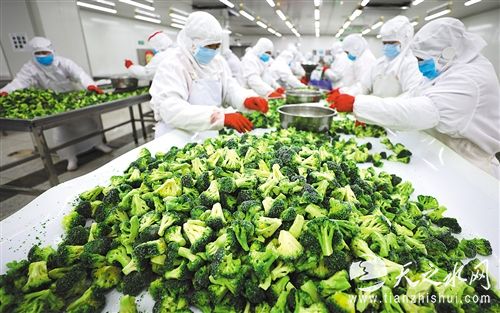 山东青果食品有限公司工人在包装速冻西蓝花。位于山东临沂市沂南县的该公司及时复工,加大国内市场供应。 杜昱葆摄(中经视觉)