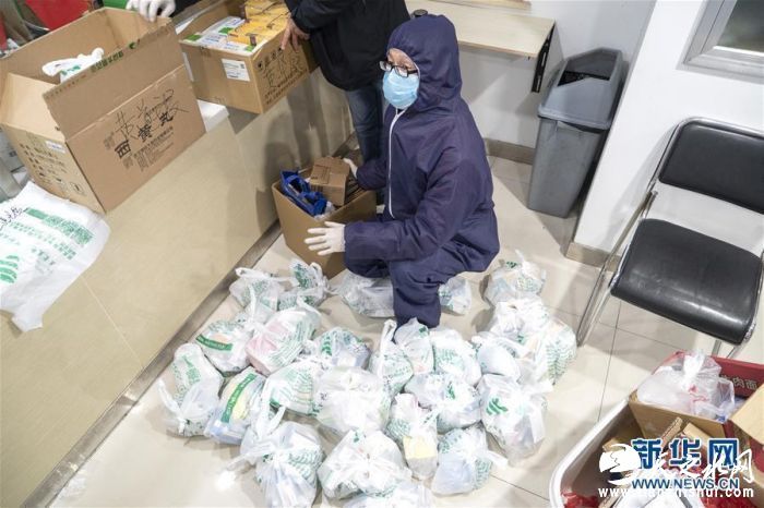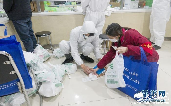 2月27日,在武汉市汉口大药房黄石路店,社区工作人员在取药。新华社记者 才扬 摄