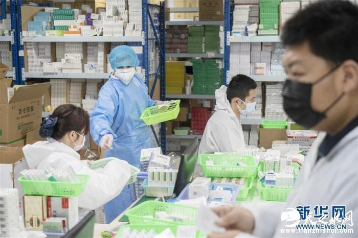 汉口大药房黄石路店的工作人员每天从8点半开始工作,经常要忙到凌晨,药店每名取药员日均取1000单药物、取药数量约3万盒。新华社记者 才扬 摄