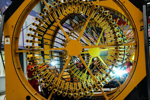 党旗飘扬在工地上,党员战斗在最前线。项目支部书记张文霄每天都要来到钢筋加工厂、桥梁桩基作业工点看一看,既抓现场防疫,也抓安全质量。眼前这些以数控钢筋笼滚焊机、数控弯曲机为代表的信息化、智能化配套装备组合,分布在3000多平米的作业区域,只需要10名左右的熟练工人就能完成一体化的流水线作业。在未来不到一年的建设期内,将为项目5座桥梁的施工,提供剪切弯曲、加工装配全体系服务。