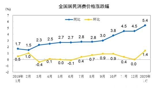 猪肉等价格上涨作用下,国家统计局此前公布数据显示,1月份CPI同比上涨5.4%,涨幅较前月扩大0.9个百分点。