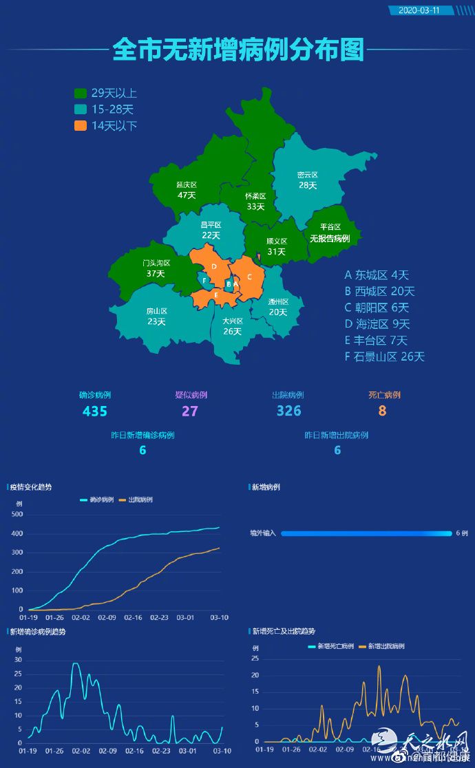 北京昨日新增报告新冠肺炎确诊病例6例 6例治愈出院