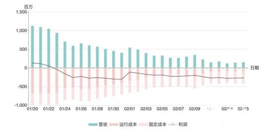 1月20日至2月15日三大航(国航东航南航)总收入与总成本