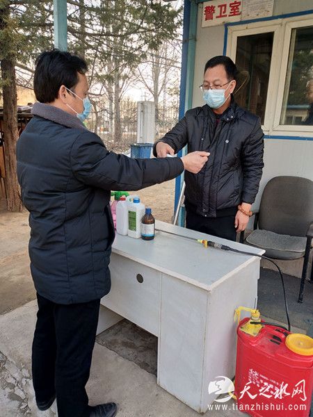 每天定时对办公楼、宿舍区进行消毒,尤其是人们经常接触的门把手、楼梯扶手等多次喷洒消毒液。办公交流尽量选择电话、网络,减少接触,实现疫情防控和工作两不误。