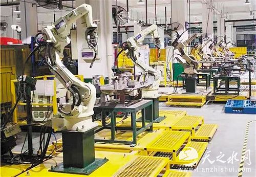 在深汕特别合作区瑞祺科技产业园一家企业里,一排机器人手臂正组装产品。 (资料图片)