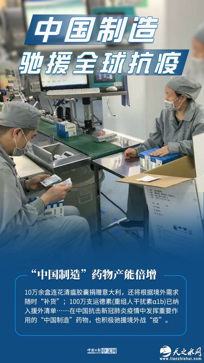 口罩、检测试剂盒、呼吸机、药物……这些日常防护、确诊和救治患者的防疫物资,正在从中国工厂的生产线走向世界。生产线开足马力、工人实行三班倒……中国企业复产复工经济社会恢复发展,继续为国际社会合作应对疫情提供有力支撑。