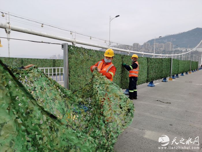 受到启迪,原先在桥面上搭设的两侧硬质铁皮挡板也被及时更换,采用了绿色网格式防护网。既美观大方,又最大程度减少了桥面上风力的影响,成为吹拂在桥面上的一道警示线、风景线。