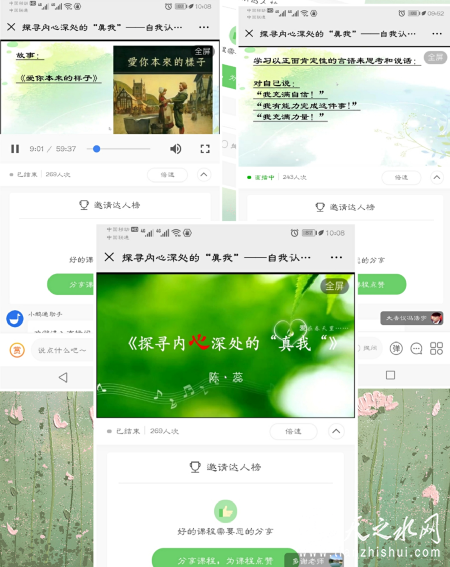 陈老师提出四个小问题:你了解自己吗?你知道自己的优势吗?你想成为一个什么样的人?为了实现梦想你做了哪些?让听课者带着问题观看一段小视频。观看的小朋友忍不住留言,“哈哈哈,真好看!”利用小视频、让大家心理有些了解和触动后。陈老师和大家分享了自己哪些是可以变化和哪些不能改变的。在可以改变的基础上不断努力进行大改变,让大家更加了解自己,接纳自己,不拿自己的长处和别人短处比计较,只和自己比较。听课者通过老师分享的小清单,使自己更了解自己,在看小视频的同时构建理想自我。就像歌曲《聪明的人》所唱:“我们不会心灰意冷,我们会给自己掌声,我不是你想象的笨,我也有我自己的门,其实你不是不能,只是你肯不肯,给自己多一个机会,因为我们都是有用的人。”陈老师的网课在歌声中让大家感受到做自己,改善不足,提升自我。