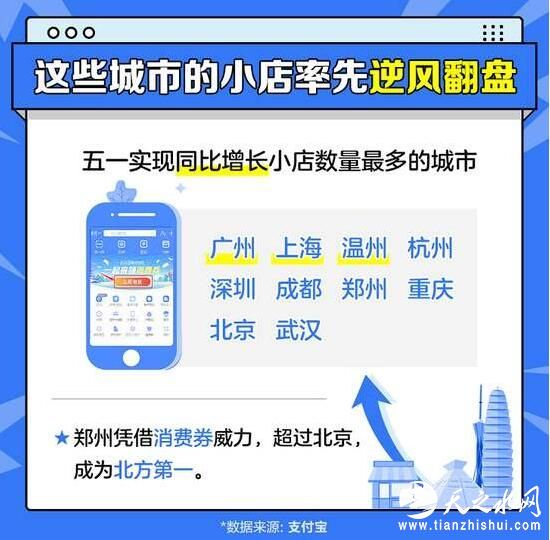 5月6日,支付宝发布的首份《中国小店经济五一报告》称,五一期间,全国800多万小店实现逆风翻盘,单日收入超去年同期水平,其中500多万小店单日收入是去年五一的两倍以上,报告显示,在消费券发放和五一小长假的双重刺激下,中国上千万小店正在快速恢复元气。