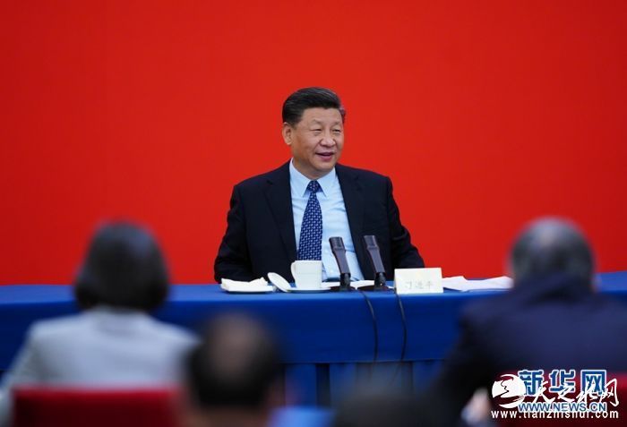 5月23日上午,中共中央总书记、国家主席、中央军委主席习近平看望参加全国政协十三届三次会议的经济界委员,并参加联组会,听取意见和建议。中共中央政治局常委、全国政协主席汪洋参加看望和讨论。 新华社记者 谢环驰 摄