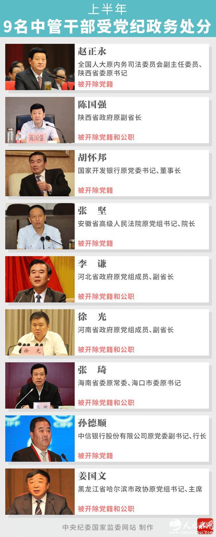 半年来,中央纪委国家监委网站公布了12名金融领域干部接受审查调查、11名受党纪政务处分信息。其中,既有中管干部胡怀邦、孙德顺,也有中央一级金融单位干部、省管干部,如中国建设银行青海省分行原党委书记、行长郭继庄等。既查金融风险“大鳄”,也抓监管“内鬼”。中国银监会内蒙古监管局党委书记、局长薛纪宁等5名金融监管机构干部被查处。