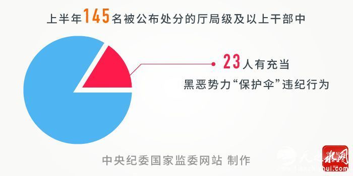 还有的在脱贫攻坚上懒政怠政、敷衍应付。比如,陕西省汉中市委原常委、统战部部长党振清“在脱贫攻坚工作中搞形式主义、官僚主义”。有的则是贯彻落实扫黑除恶不力,甚至甘当“保护伞”。比如,上海市杨浦区人民法院原党组书记、院长任湧飞私底下接受黑社会性质组织成员请托,为其违规干预插手有关案件。统计显示,上半年145名被公布处分的厅局级及以上干部中,23人有充当黑恶势力“保护伞”违纪行为。