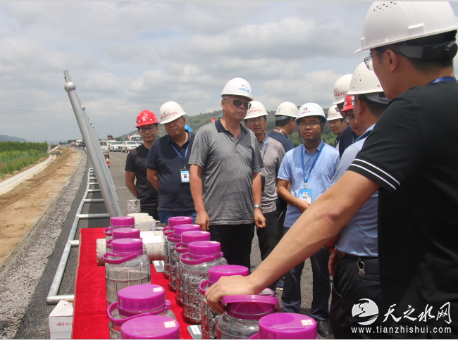 在检查现场,督查组一行人员详细听取了该公司副总经理兼项目负责人张骅对管区内剩余工程施工进度及安全质量方面的情况汇报,并结合质量安全督查内容对桥面铺装、路基边坡防护、环水保工程、防洪防汛等进行详细检查;对项目部扎实有序开展质量安全工作予以充分肯定。