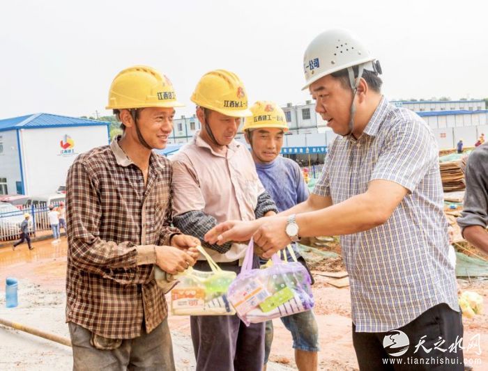 (记者 常魁星 通讯员 郑宏珍 熊绍文)入伏之天,娇阳似火,酷热难耐。7月16日,江西省建工集团有限责任公司党委副书记、总经理林绍华,在集团总经办主任赖宝平,建工一建党委副书记、总经理龚永林和党委副书记、工会主席付文辉等陪同下,到南昌市红谷滩区的国家职业教育虚拟仿真示范实训基地项目,看望慰问高温下坚守工作一线的党员、干部和职工,为广大建设者送上一片清凉,一份关爱,开启了江西建工一建2020年度“送清凉、送平安、送关爱”工作序幕。