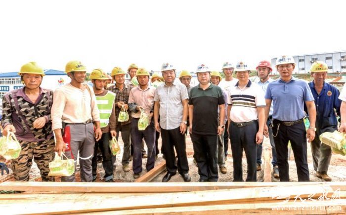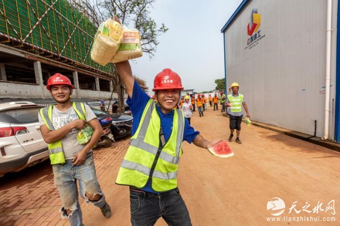 林绍华一行头顶烈日走进施工现场,给工人们亲手送上西瓜、毛巾、藿香正气水等防暑降温用品。看到工人们晒的黝黑的皮肤,穿着被汗水湿透的衣服,林绍华深情的说:同志们辛苦啦!大家在烈日下工作千万注意自身健康与安全。他叮嘱项目负责人在高温天气下施工要注意错开高温时间段,采取防暑降温措施,在紧抓安全和工期的同时,保障施工作业人员的身体健康。