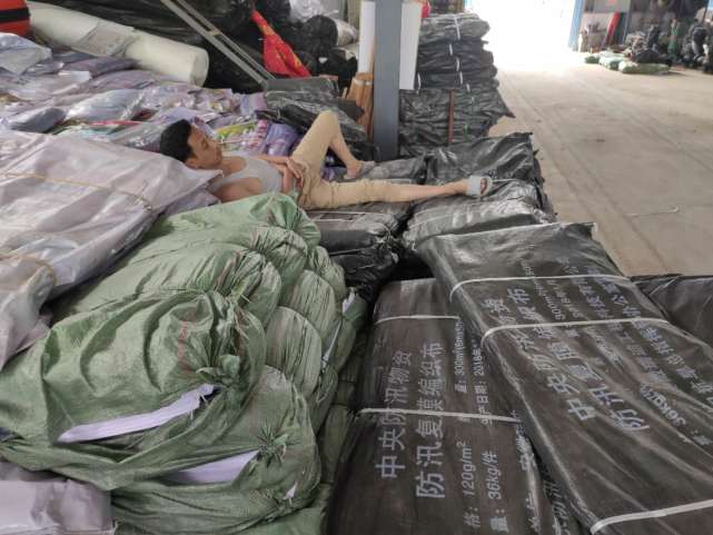 有一次,他的同事偷偷拍来一张曹飞倒在物资堆上短暂休息的照片,我禁不住留下了泪,并骄傲的告诉孩子,你爸爸是好样的。