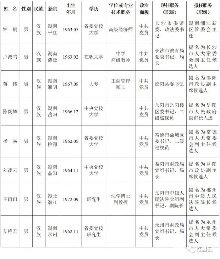 为了加强对干部选拔工作的监督,提高识别和任用干部的准确程度,现对省委常委会会议研究决定的下列拟任人选(提名人选、候选人人选)进行任前公示:
