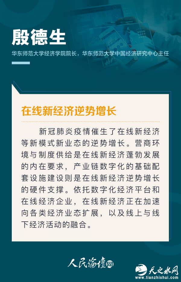 第二季度,中国国内生产总值同比增长3.2%,经济增长实现由负转正,成为新冠肺炎疫情暴发以来第一个实现增长的主要经济体。中国努力在危机中育新机、于变局中开新局,新的经济增长点、经济新业态、新模式不断涌现且动力强劲,正日益成为中国经济发展的新亮点。中国经济为何能率先复苏再次带给人们信心?近日多位权威专家在《人民论坛》撰文深入解读,人民论坛网为您整理精彩观点,一起来看。