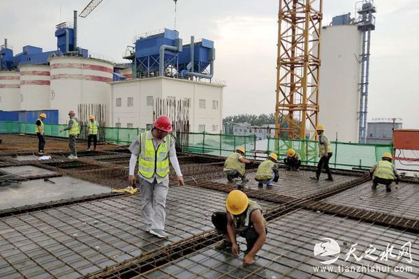 同心协力完成节点任务。水泥配料站、水泥粉磨是业主目前关注重点,要求8月3日前筒仓滑模到14.4米库底板、水泥粉磨11.5米平面混凝土浇筑完,为安装辊压机、减速机等设备创造条件。时间紧任务急,持续的降雨反而更加激发了项目部的斗志,水泥配料站筒仓施工采用滑模工艺,滑模平台上钢筋绑扎、预留预埋安装、混凝土浇筑、库壁压面等各道工序相互配合,工种衔接默契。虽然雨水经常光顾,但是大家没有丝毫懈怠,热火朝天的干劲儿始终未减。水泥粉磨车间楼层高、场地狭窄给施工造成困难,项目部采用白天作业面施工,晚上倒运材料等方法,保证施工进度。截至7月30日上午,水泥配料站14米库底板、水泥磨11.5米平面、水泥及矿粉储存基础筏板均已浇筑完混凝土,为项目下一步施工创造了积极有利条件。