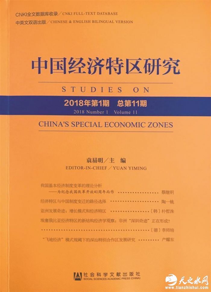 4.《中国经济特区研究》(集刊)。该集刊创始于2008年,已经连续出版12期,主编袁易明教授,是国内外唯一以中英两种文字出版专门研究中国及世界经济特区问题的学术刊物。2014年起,集刊已由德国斯普林格(Springer)出版社海外出版发行。