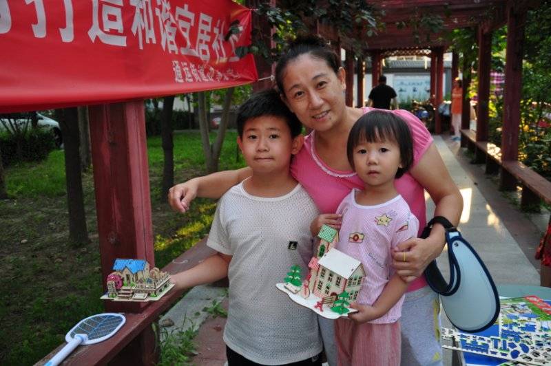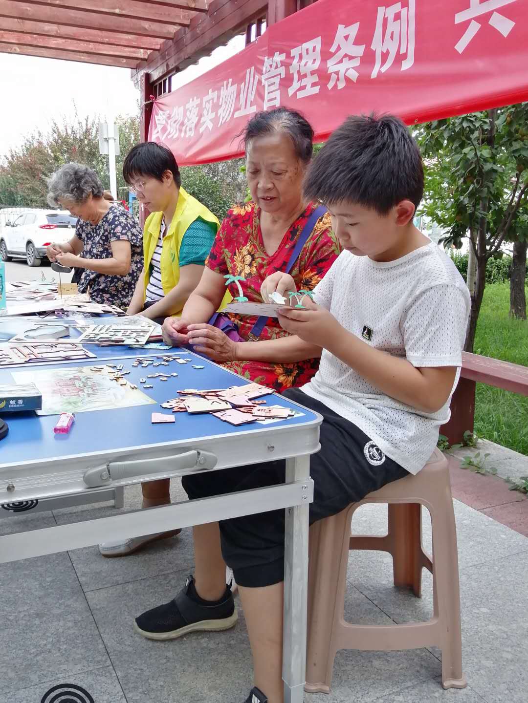 边制作边聊身边趣事,边制作边聊心目中的“理想社区”,对楼门公约提出见解,进一步完善了楼门公约。活动吸引了更多居民参加,大家热情高涨,选择自己喜欢的“爱的小屋”插片,看图、研究、交流、制作,一栋栋海景房、圣诞公寓矗立在大家面前,相机为制作者拍下全家福,留下美好记忆。