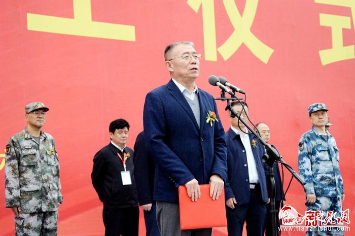 市委副书记、市长王军出席开工仪式并讲话。他说,天水军民合用机场迁建工程,是国家和省、市列重大建设项目,是事关天水经济社会长远发展的一项重大民生工程,也是市委、市政府谋划多年的一项基础性带动工程。希望建设单位克服地质结构复杂困难的不利因素,严格质量管理、加快施工进度、精心组织施工,努力为机场迁建项目全面开工积累经验、提供支撑;工程监理单位要切实履行监理职责,从严从细抓监管,精益求精保质量,确保将项目建成精品工程、优质工程、样板工程;秦州区和市直相关部门、驻市有关单位要牢固树立全市“一盘棋”思想,主动作为,密切配合,积极为工程建设提供优质高效服务,力促试验段工程早日完工。同时,要趁着天水机场试验段开工建设的强劲东风,继续按照明责知责尽责的要求,强化用心用情用力的理念,对照精准精细精品的标准,恪守从严从细从实的作风,只争朝夕,鼓足干劲,振奋精神,主动作为,尽快实现天水机场的全面开工建设。