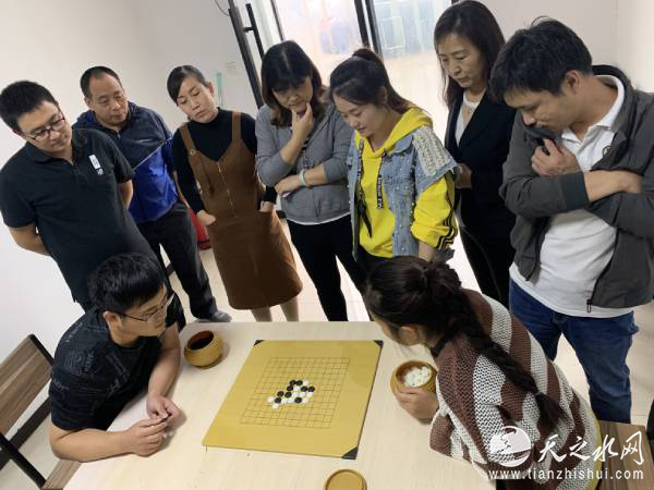 “以棋会友,其乐无穷”的五子棋比赛在自由组合的七个小组之间进行,两两一组对弈,经过层层比拼,决出了比赛的获胜者。对弈过程中选手每走一步都经过深思熟虑,慎之又慎。队友之间相互切磋交流,不仅丰富了业余生活,提高了棋技,也增进了同事间的感情,增强了集体凝聚力。
