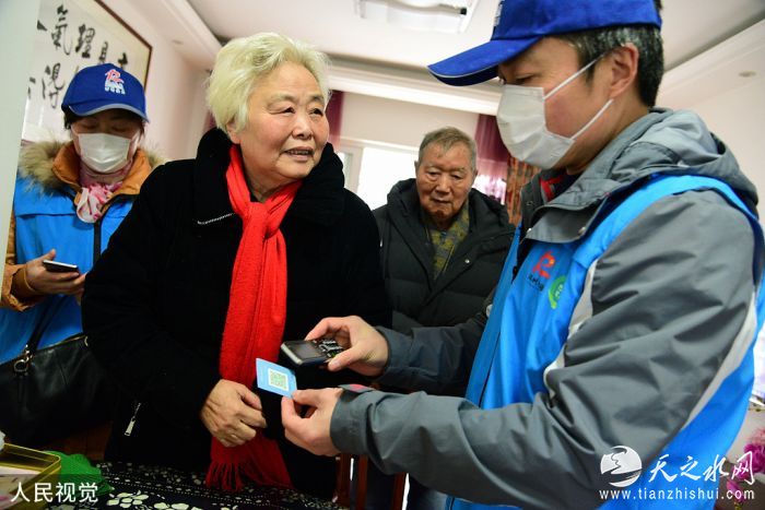 2020年3月1日,江苏省镇江市七里甸街道万科社区组织志愿者上门,帮助空巢老人申领健康码
