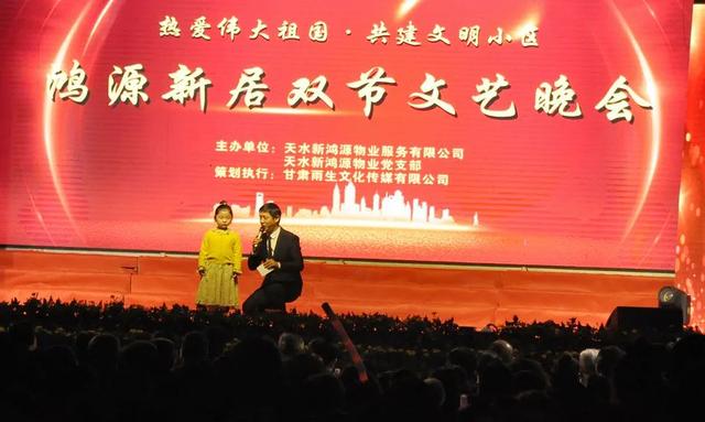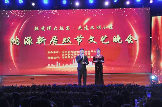 双节期间、由天水新鸿源物业服务有限公司、天水新鸿源物业党支部主办,甘肃雨生文化传媒公司承办并由甘肃省第八建设集团有限公司等多家单位赞助的主题为“热爱伟大祖国 共建文明小区”的鸿源新居小区举办的庆国庆迎中秋大型文艺晚会盛装启幕。