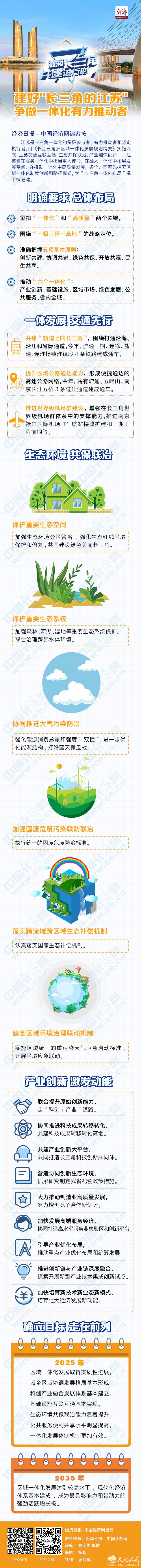 经济日报-中国经济网编者按:江苏是长三角一体化的积极参与者、有力推动者和坚定执行者。自《长江三角洲区域一体化发展规划纲要》实施以来,江苏交通互联互通,生态共保联治,产业加快创新……江苏省在服务一体化中担当重大使命,在融入一体化中拓展发展空间,在推动一体化中高质量发展,各个方面率先探索区域一体化制度创新和路径模式,为“长三角一体化布局”摁下快进键。