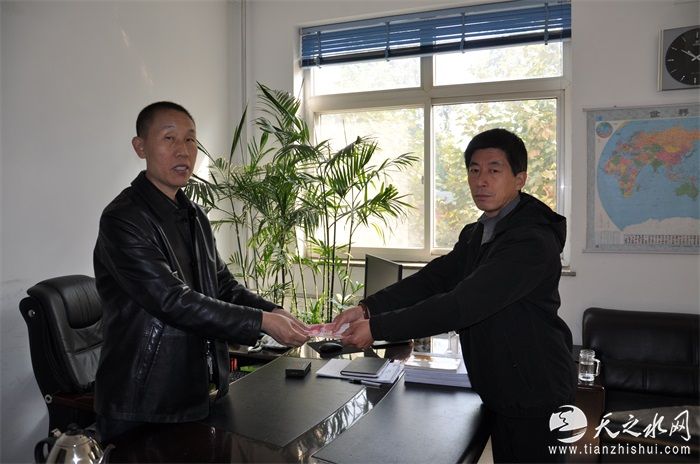 (李晖、尚彦田报道)当河北建工集团省四建六分公司党总支书记、工会主席徐金祥将500元丧葬慰问金送到尚彦田手上时,他激动地握着徐金祥的手,连声说:“感谢!感谢!”。