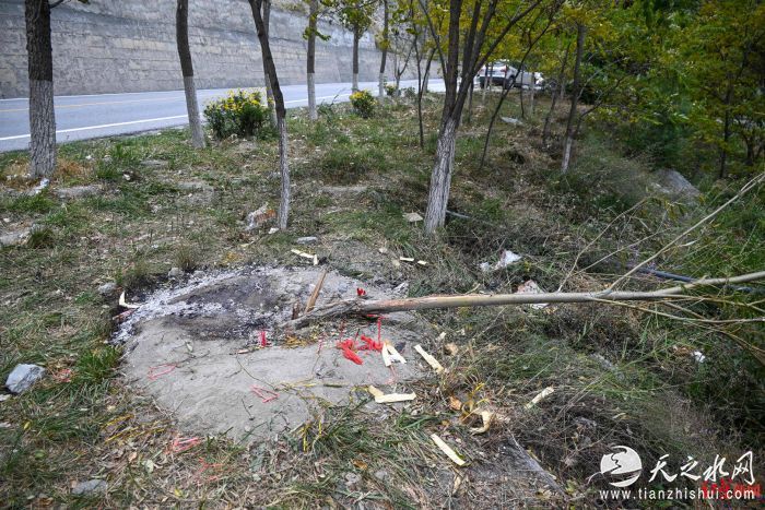 事发地上还残留一些香烛钱纸