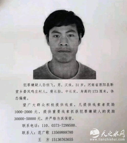 河南原阳一家6口被杀警方追捕31岁嫌疑男子!最高悬赏5万