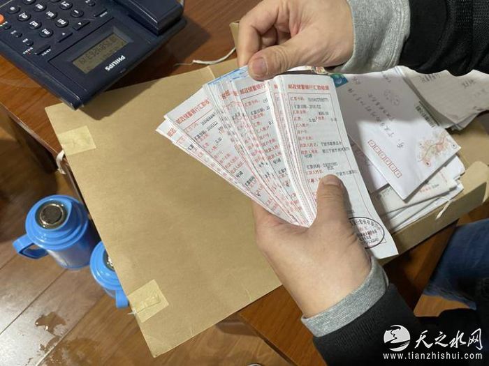 在众人的关注下,宁波市慈善总会会长陈云金拆开了信封,映入眼帘的果然是一叠厚厚的汇款单,共105张,其中103张是9999元,1张50元,1张53元,总计103万元,汇款时间都是11月26日。