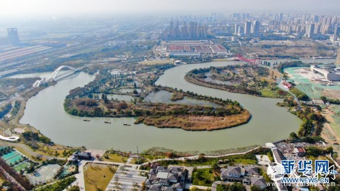 这是11月14日拍摄的江苏省扬州市运河三湾生态文化公园景色