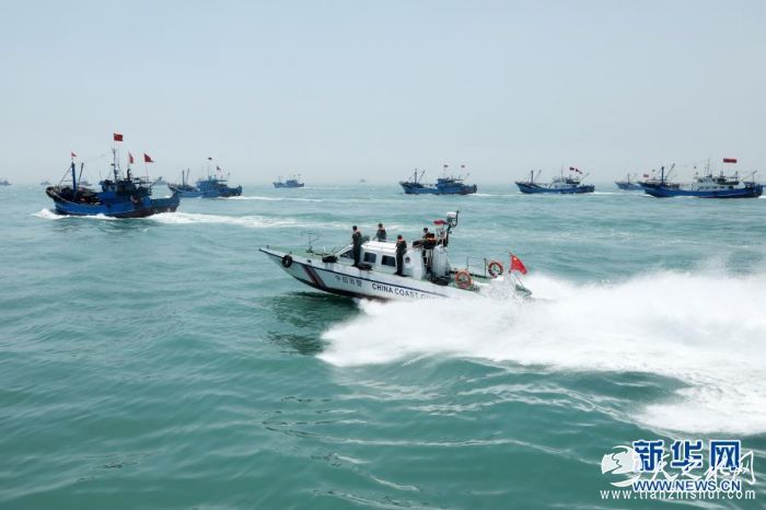 海警执法员加强海域巡逻,防止黑恶势力滋扰作业渔船