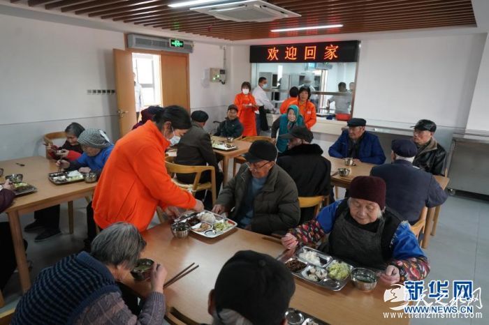 12月1日,在苏州工业园区斜塘街道区域性养老服务中心,老人们在餐厅吃午饭。